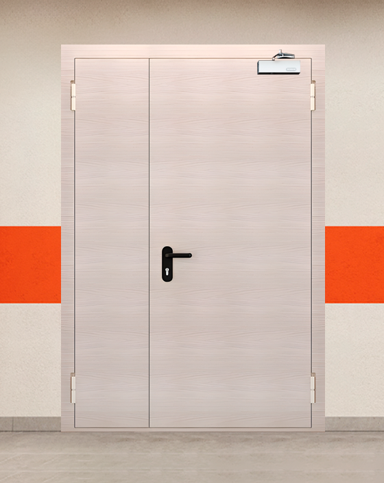 Высококачественная огнестойкая дверь EI 30 полуторная конструкции с бежевой покрытием для профессионального применения.